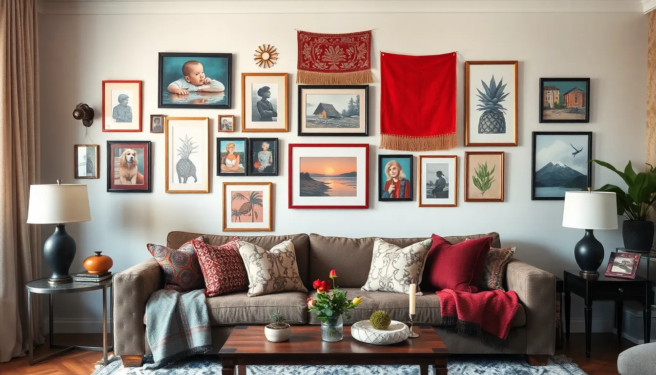 Gallery walls create a striking visual impact in any living space. Homeowners can mix and match framed photos, artwork, and even textiles for a dynamic display. Selecting a common theme or color scheme helps unify diverse pieces. Using various frame sizes adds depth and interest. Consider arranging the pieces on the floor first to find the best layout. This method enables easy adjustments before committing to wall space. Once satisfied, simply hang them using picture hooks or adhesive strips for a polished look.